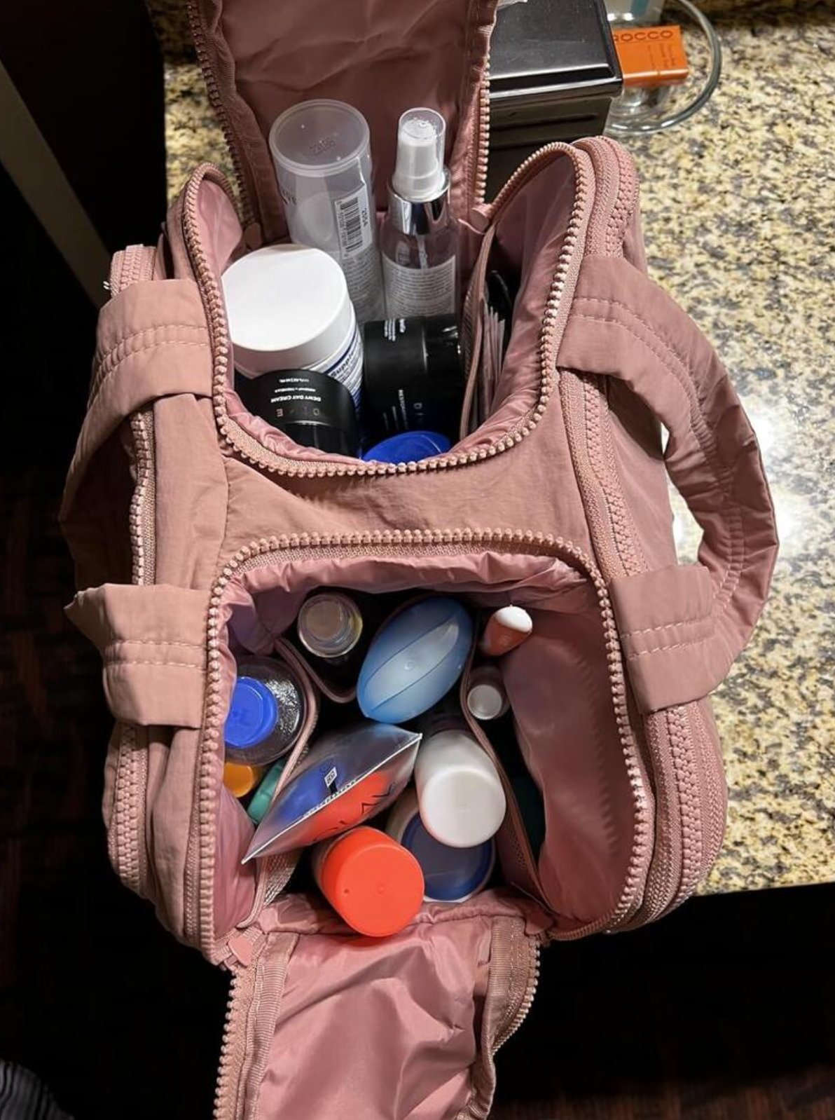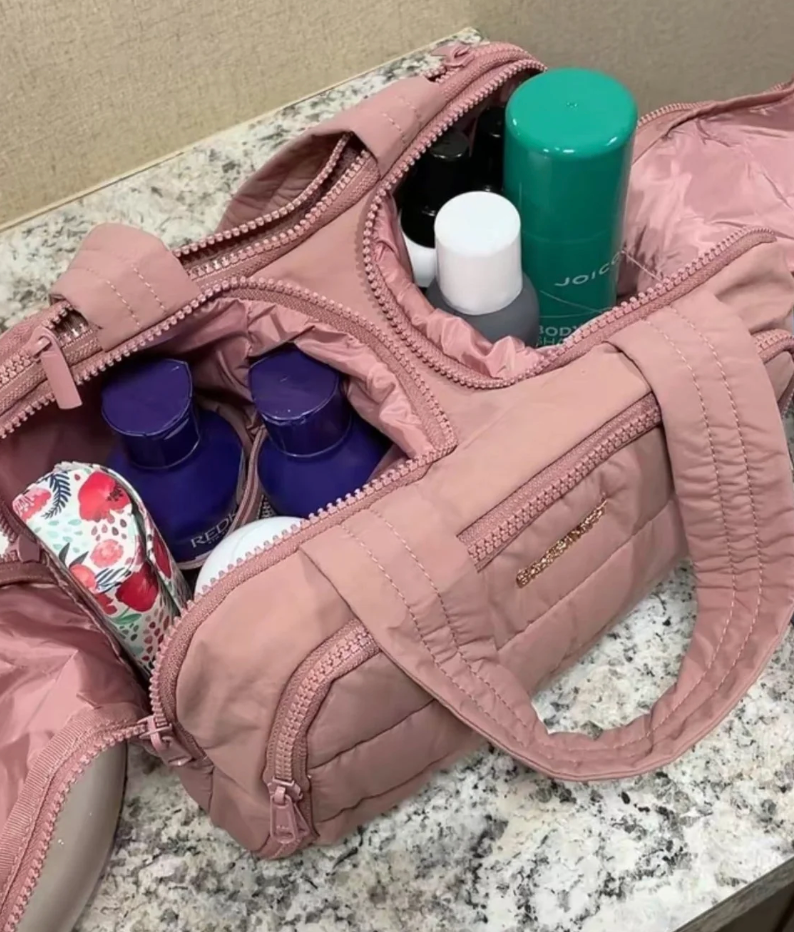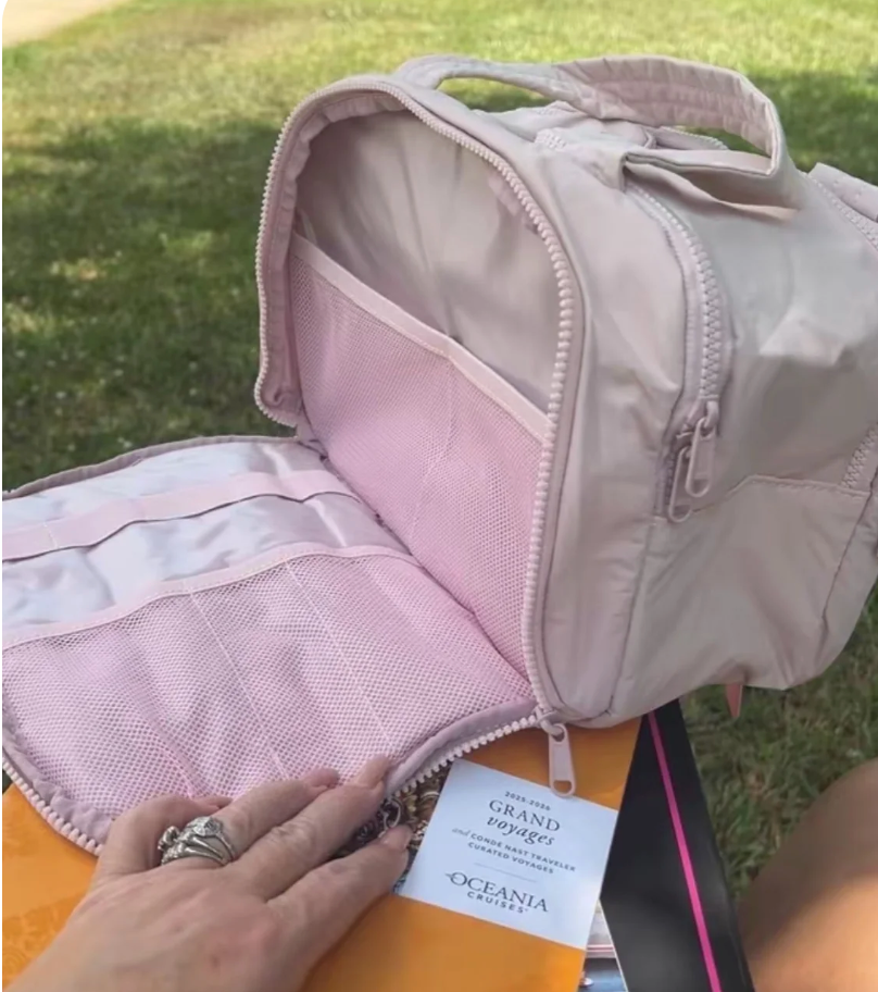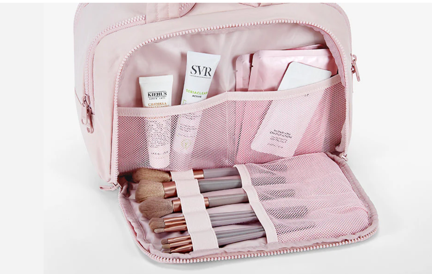 Sì. I 4 scomparti separati ti permettono di organizzare skincare, make-up, shampoo e accessori senza comprimere o rovesciare nulla.